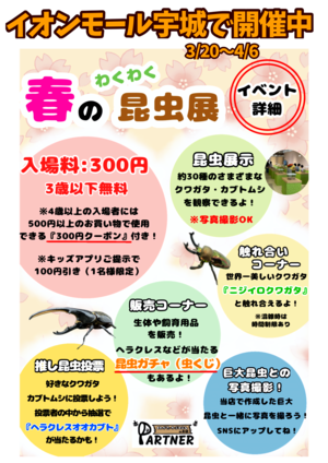 ✨*わくわく昆虫ひろば開催!✨イオンモール宇城に、クワガタ・カブトムシたちが集合!場 所:イオンモ...